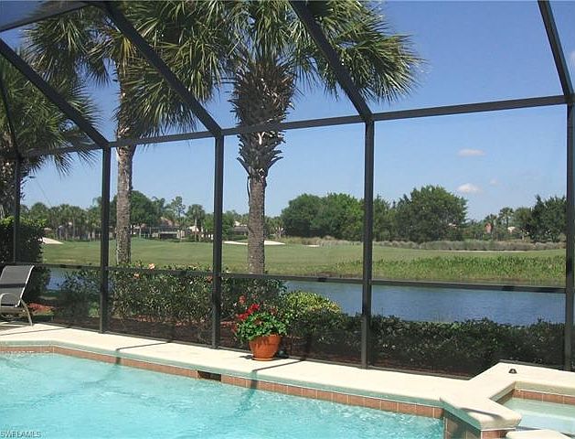 GORGEOUS 3 BEDOOM HOME WITH GOLF COURSE MEMBERSHIP INCLUDED IN THE PURCHASE. NO INITIAL FEES. As soon as you enter you'll view the SPARKLIING POOL AND SPA ALONG WITH A WONDERFUL GOLF COURSE VIEW. This home has many upgrades which include GRANITE COUTERTOPS WITH A COORDINATING BACKSPLASH in the kitchen, PLANTATION SHUTTER in the dining room, the guest and third bedroom. NEW LIGHT FIXTURES AND PADDLE FANS. There is a NEW ENEGY EFFICIENT LENNOX AIR CONDITIONER. THE MASTER BATH HAS A CUSTOM GLASS SHOWER DOOR along with UPGRADED TILE. The POOL HEATER AND POOL PUMP ARE ALSO NEW. On the lanai you'll find that the LANAI SCREENING IS NEW AND THE FRAME HAS BEEN REPAINTED. All of the rooms are painted in rich decorator colors. A very attractive LEADED GLASS FRONT DOOR has been added. BEAUTIFUL WOOD PLANK FLOORING enhances the beauty of the home. The APPLIANCES HAVE BEEN UPGRADED as well. All of this plus a top-notch community, Colonial Country Club. Colonial has an 18 hole championship golf course, har-tru tennis courts, a large fitness center, a spa and swimming pool, 2 restaurants, bocce ball, pickle ball and many of other activities. You must see this fabulous home today