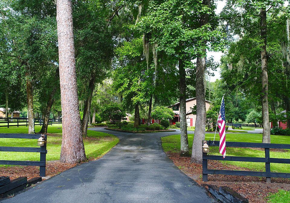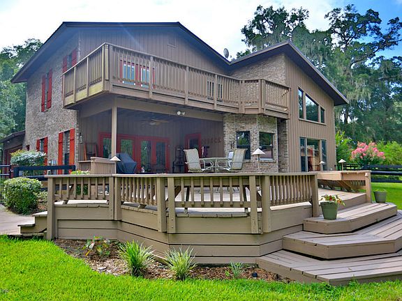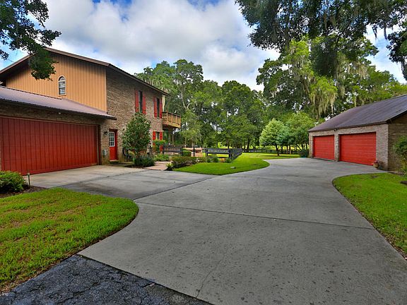 Tranquility for you and your horses in this Shady Road Ranches Estate!Delightfully charming home with soaring ceilings in the living room, beautiful hardwood and large windows. Family room features slate floors, brick fireplace, and incredible views from every window. Kitchen features: granite counter tops; new stainless steel appliances; new backsplash; plus breakfast nook overlooking the paddocks.French doors will lead you to the expansive multi-level deck with plenty of seating room for relaxing with friends and family. Master suite features his/hers walk-in closets plus French doors open to second floor deck overlooking lush paddocks and Live Oaks. Guest suite with walk-in closet.2-Car Garage attached to home while an extra detached 2-car garage with 1 bedroom/ 1 bath.