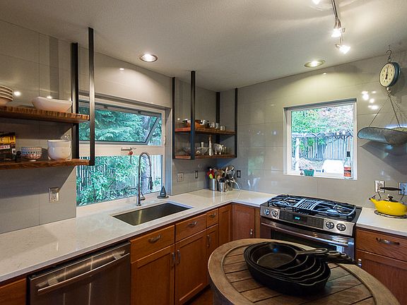 NW Modern w/natural light in every room.Custom salvaged woodwork thru-out,hardwoods/slate/Vaulted Grt Rm w/beams,customfireplc w/hilltop views.Call Agent for updates and features list