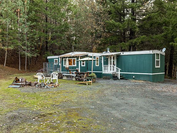 Peacefully private and affordable living on the outskirts of the quaint town of Rogue River. This cozy 1973 single wide has been lovingly cared for over the years and has 2 bedrooms, 1 full bath , 672 sq.ft.,and sits on 7.51 acres with a seasonal creek. The front yard is perfect for entertaining, BBQing or just relaxing next to the fire pit. The large 3 room out building is great for a hobby room, man cave, workshop or maybe even a guest house. Call or text for your showing today. Well flow when sellers purchased was 12 gpm. Owner willing to carry, and possible financing through AG West Farm Credit
