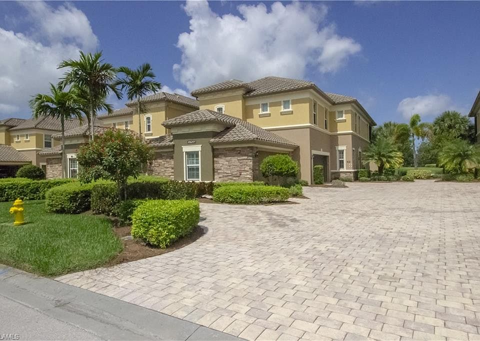 Unmatched western golf and lake views from this highly sought after coach home in The Quarry. 3 bedrooms plus a bonus den, formal dining, living, kitchen nook and a huge lanai overlooking the widest part of the lake, and middle of the fairway, all above a large 2-car attached garage and private, interior atrium stairs. Upon entering, you'll appreciate the immediate open and airy, end-unit feel with light abounding from the large sliders with automatic, electric roll down storm shutters. Large neutral tile on diagonal, coffer ceilings, rich wood cabinets, granite, tile backsplash, stainless appliances all bring together a sophisticated design. With 3 full bedrooms plus the bonus den with a Murphy bed, host all your family and guests. The master overlooks the western exposure and boasts custom closets, and a large bath that has a walk in tile shower, garden tub, and dual vanities. The Quarry is a luxury resort community, golf membership optional, while every resident enjoys the resort style pools, tiki bar, beach and cabanas, lake lodge with bar and restaurant, lap pool, marina, tennis, pickleball courts, and an active social calendar - all included. See walk-thru 3D tour today!