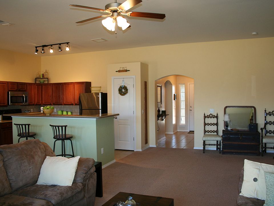 Fantastic open kitchen/living/dining plan lives large!Wonderfully upgraded property backs to greenbelt with gate to walking/biking trail.Solid surface countertops & updated appliances in kitchen,spacious & functional closet in master,in-ground storm shelter in garage.Right around the corner from desirable Mustang Valley Elementary & I-40 & turnpike access.Very well maintained,this one has it all!!