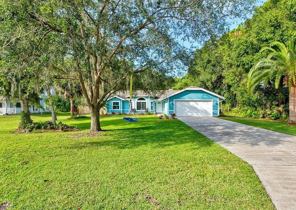 Introducing this charming home in Braden Woods! Situated on a spacious half-acre + lot, this 3 bedroom 2 bathroom home offers just over 1600 sqft of living space. The interior features hardwood flooring, vaulted ceilings, updated light fixtures, and neutral paint colors. The kitchen is equipped with light wood cabinetry, beautiful glass tile backsplash, and stainless steel appliances. The split bedroom floor plan offers an optimal layout for functional and comfortable living. Step into the backyard oasis and discover a large pool, perfect for refreshing dips on a hot summer day, and entertaining guests. The fenced in backyard offers both security and privacy. With its serene surroundings, this home provides an ideal retreat from the hustle and bustle of everyday life. Embrace the outdoor Florida lifestyle just steps from your doorstep with a spacious covered lanai, mature oak trees, lush landscaping, and a brick paved firepit and seating area. All windows were upgraded to hurricane impact in 2020, the roof was replaced in 2021, and the pool, pool cage, and paved lanai were completed in 2022. Braden Woods is conveniently located just minutes to Lakewood Ranch Main Street, I-75, University Town Center, and the area's top rated schools. Don't miss the opportunity to own your own piece of paradise in the heart of town!
