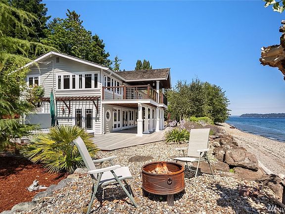 A beach escape of rare beauty! Craftsman-inspired, impeccably maintained, bright and spacious home is tucked away in a well-hidden waterfront oasis on Colvos Passage. Imagine yourself in this magical home on 125' of absolutely gorgeous beach! You'll be welcomed by light-filled spaces that boast beautiful finishes and fabulous views up and down Puget Sound. On the main floor, river rock gas fireplaces warm the living and dining rooms, wood floors and quartz counters complement the chef's kitchen, and there is a 3/4 guest bath. A bank of French doors open to sea breezes and lead to a huge, partly covered deck for the perfect seat in the sun OR shade! A versatile bonus room is on the lower level, as well as the luxe master suite that features a spa-like bath, fireplace, and French doors to a private deck with a hot tub overlooking the beach. Feed your creativity in the artist's studio next to the home! This darling 1930's bungalow has water and power plus a covered deck to inspire you with its views of sea and shore. Parking is easy, with a double garage just behind the main home, and low-maintenance grounds end just above the beach at a solid boulder bulkhead. Spend endless hours playing on the sand, picking up pebbles, and splashing in the Sound. You've found your private paradise!
