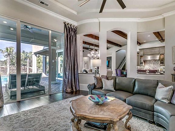 This Members Club 5br/5ba home plus a 4 car garage with over 6,000 heated square feet and almost 8,500 under roof is the absolute best buy in all of Grande Dunes, and quite possibly has the best view. This fantastic home located in the Members Club at Grande Dunes has a panoramic view of the 7th green on the prestigious Grande Dunes Members Club golf club. From the time you pull in the circular driveway, you are greeted with true quality. The architectural details features beautiful moldings throughout the home, gorgeous beam ceilings throughout both the living and family rooms with a floor to ceiling stone fireplace in the living room. Enter your gourmet kitchen featuring custom cabinetry, double oven, wine cooler, vast island if you like to entertain, and a breakfast nook overlooking the outdoor living paradise! The master suite has tons of room to sit back and relax, and even more room to spread out in the master bath with double sinks, spacious garden tub, and a fantastic walk-in shower...and located off of your master bath as part of your master suite is a separate workout room. Two other bedrooms are featured on the first floor for your family and guests. Walk upstairs to find two more guest rooms, a super large entertaining area for a game of pool, hanging out with family and friends, or venture out onto your covered balcony and enjoy some of the finest golf course views you will find in Myrtle Beach. Last but not least upstairs, sit back in your comfortable recliners and watch your favorite game or movie in your own private movie theater! If you prefer to be outdoors, look no further. Sit under your covered lanai, enjoy your favorite beverage while cooking on your custom outdoor kitchen, and enjoy a dip in the pool or spa at the end of a long day. Some of the other great features of this home are: Membership to exclusive oceanfront Ocean Club with your own private beach, formal dining room, spacious 12 x 16 office, oversized laundry room, oversized four car garage with the separate fourth bay specially designed for an oversized SUV, mudroom located off of the garage, and parking for approximately 4-6 additional cars over and above the garage. If you are looking for that perfect home that has it all with an incredible view, this home is it.