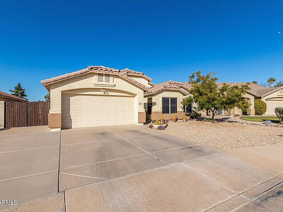 Welcome to this beautiful 3 bed, 2 bath energy-efficient home in Mesquite Canyon! Nestled on a cul-de-sac displaying a low-care landscape, RV gate, and a 2-car garage. Fabulous interior boasts a welcoming foyer, vaulted ceilings, archways, designer paint, tons of natural light, and neutral & wood-look tile floors in all the right places. The floorplan offers a spacious living room and the family room opens to the kitchen allowing a nice flow through the house. The kitchen features sleek SS appliances, pantry, recessed lighting, white cabinets w/crown molding, and an island w/breakfast bar. The master has a double-door entrance and a full master bath w/dual sinks. Versatile den is fit for an office or bonus room. The large backyard has a covered patio & storage!