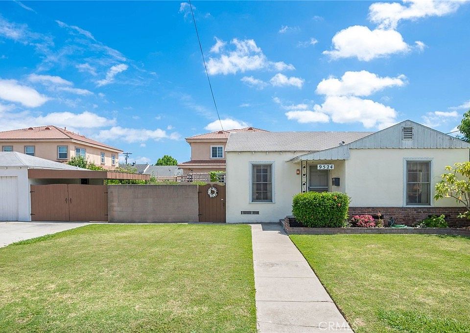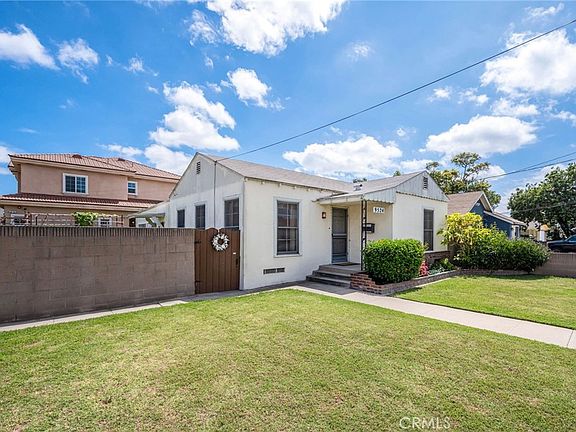 Welcome to this charming three-bedroom, two-bathroom home nestled in the heart of Bellflower. As you enter through the covered front porch, you're greeted by a spacious living room filled with natural light streaming in through large windows, creating a bright and inviting atmosphere. Connected to the living room is a white country-style galley kitchen, providing a cozy and functional space for preparing meals. Just off the kitchen, you'll find the dining area, perfect for enjoying family meals or entertaining guests. A few steps down from the kitchen, you'll discover the spacious family room, featuring beautiful wood beams and a cozy fireplace. This room seamlessly opens up to the backyard, creating an effortless indoor-outdoor flow and providing a great space for family gatherings. Stepping outside, you'll find a private backyard adorned with green, lush lawns and mature trees. There are endless possibilities for customization, allowing you to create your very own dream garden. One car detached garage with a shared driveway. One additional carport space behind the gate. Conveniently located close to shopping and dining. Easy Access to 105, 605 & 91 freeways. Don't miss out!