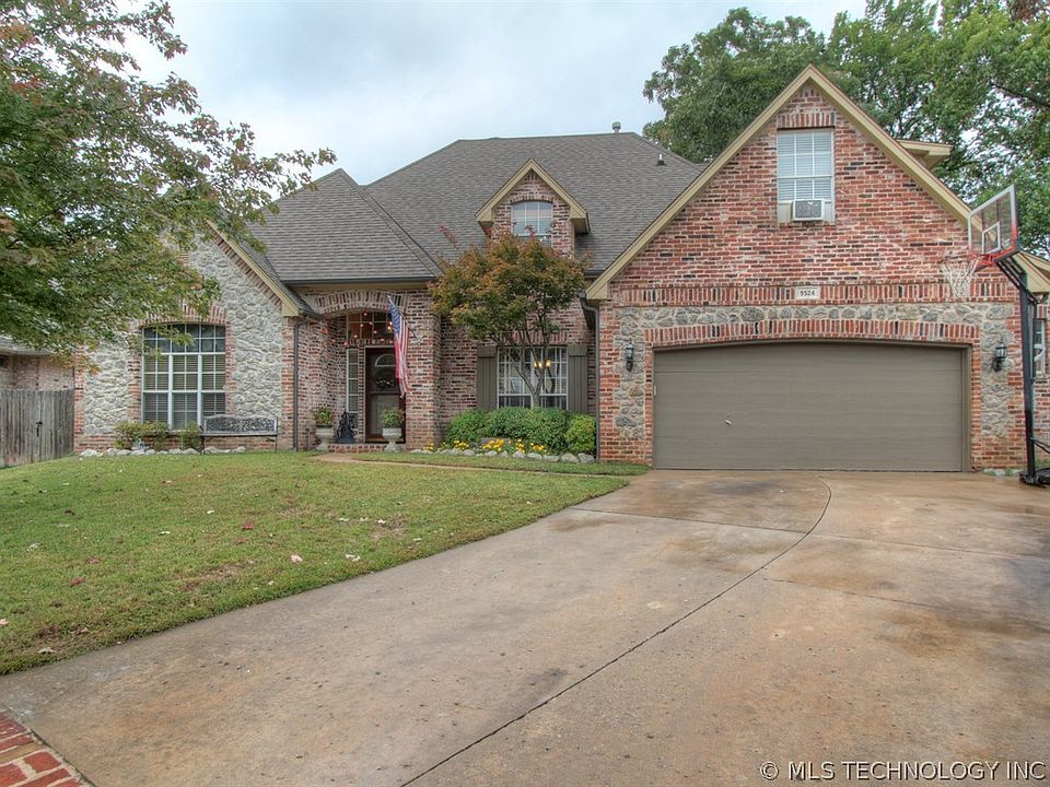 Large home in Ridge Point II,large living w custom fireplace,kitchen w island & pantry,formal dining,2 bedrooms down,1 could be office,game room up,bedroom up have access to bathrooms. 2 patios oversized yard with hidden corner fenced storage.