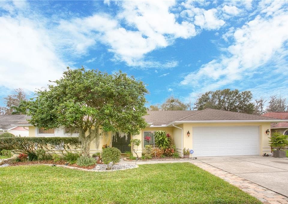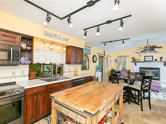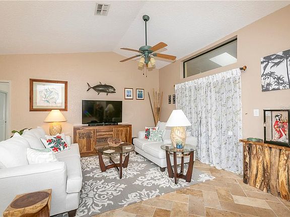 Gorgeous only begins to describe this home! This 2-Bedroom, 2 bath and 2 car garage home has an easy third bedroom. Upgraded Travertine floors through most of home. This one features a split floor plan and a large lanai overlooking the pond and preserve in the back. The home also features vaulted ceilings. Outside the lanai is a large area of brick pavers to expand your entertainment. No rear neighbors here. The large open kitchen is upgraded from end to end including stainless appliances (new in 2018). The family room has a whitestone fireplace. The AC system is one year new! There is a large bonus room off of the master bedroom.