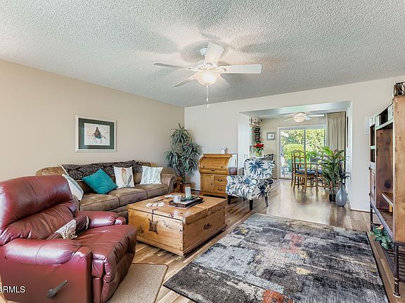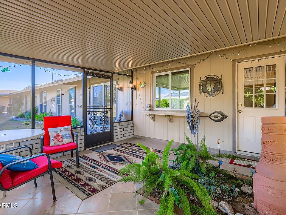 Charming and well-loved duplex. This 2 Bedroom, 2 Bath gemini sits north-south and is bright and happy and has so many upgrades. Sit on the front patio for warm sun or sit on the screened patio in the back for shade and privacy. Upgrades include: dual pane windows (triple pane on front window), new front and back doors 2024, laminate flooring, painted kitchen cabinets and new hardware, replaced appliances, hot water heater 2022, garage opener 2024, HVAC 2018. Rec centers close with pickleball, tennis, golf, gyms, indoor and outdoor pools. Close to Arrowhead Mall and many fine restaurants. Monthly HOA fee includes: yard maintenance, water, sewer, garbage, pest control, exterior painting. No rentals allowed. 2 pets allowed with no weight restriction. You will love this home