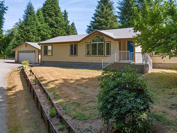 Location, location, location is here with this beautifully updated triple wide manufactured home on 5 acres just outside of Coos Bay. The property features a 36 X 42 Shop with one 10ft garage door and one 13ft door, detached 2 car garage oversized, beautiful 5 acres with timber, 2 creeks, apple and cherry trees, fenced garden area including mature blueberries bushes, dog kennel, tool shed, chicken coop with enclosed outside pen and so much more. The house has 3 bedrooms with 2 full bathrooms, living room, family room, dining room, office or sitting area off primary suite and nice laundry room. The primary suite is huge with a separated additional room, nice sized walk in closet and bathroom with tub and separate shower. The living room has vaulted ceilings and is open to the formal dining room. Beyond the dining room is a large family room that also has vaulted ceilings and an open concept to the kitchen. Kitchen includes a build in oven, island , pantry cabinets and so much more. The layout is great in this home with the 2 additional bedrooms on the opposite side of the house away from the primary suite. These 2 bedrooms are roomy, and there is an additional full bath and laundry room. The exterior is meticulously maintained with hardi plank siding, vinyl roof, and concrete sidewalks and patio. The home sits on a split face block foundation, and has been completely replumbed with new pex pipe. WATCH THE VIDEO TOUR !! Must see to appreciate!