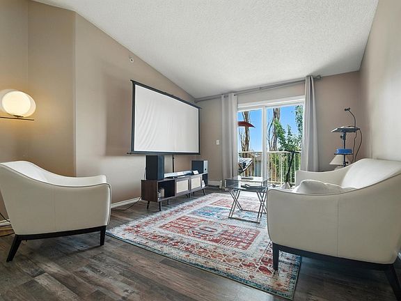 Welcome to Park Place Eaux Claires situated in a desirable North Edmonton Community. This spacious top-floor condo features 2 bedrooms and 2 full bathrooms spanning nearly 850 SqFt of well-designed living space. Be welcomed with vaulted ceilings and an open-concept layout that creates a bright, airy atmosphere, complemented by a generous living area and functional kitchen. The primary suite includes a walk-in closet and a private 4-piece ensuite. Additional highlights include in-suite laundry, a large private balcony, plenty of storage space, and a Titled parking stall located close to the buildings entrance. The building is pet friendly, well managed and has low condo fees! Enjoy the convenience of being steps away from grocery stores, restaurants, shopping centres, schools, public transit, and with easy access to the Anthony Henday Drive makes commuting a breeze. Don't miss the chance to make this lovely space your new home or an addition to your investment portfolio!