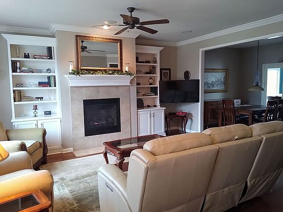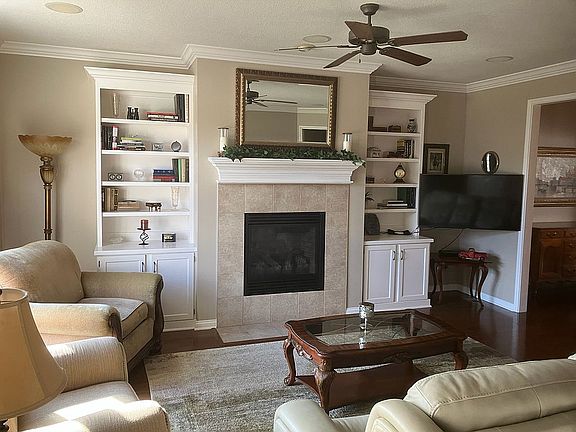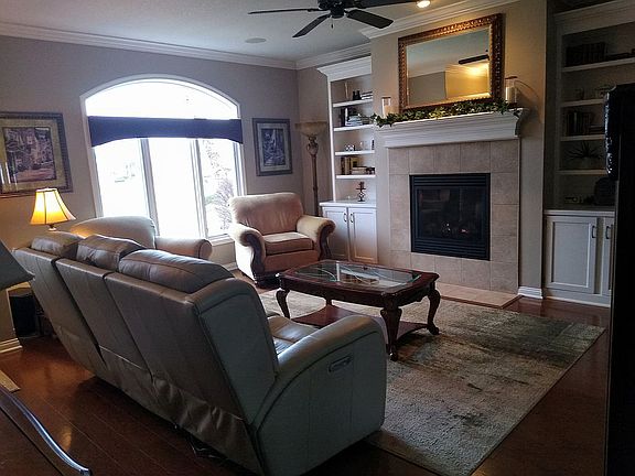 Built by Carriage Places Homes, this custom villa is located on a prime cul-de-sac waterfront lot in the Courtyards of Dawson's Creek. As you enter the Great Room from the covered front porch you will immediately notice the detail and upgrades from the 10' ceiling, trim and crown molding to the fireplace surrounded by bookshelves and cabinets. A surround sound stereo system with subwoofer is included. Opening into the Great Room is the dining area that leads into the 4-season sunroom through large glass pocket doors. From there you will notice the large back patio with a small decorative pond and waterfall, beautiful landscaping, pond views, adjacent protected woods that attracts all sorts of wildlife and gorgeous sunsets. Also, opening into the Dining area is a well equipped kitchen with lots of storage, new quartz countertops, sink and garbage disposal. . The newer kitchen appliances remain along with the washer and dryer. There are three spacious bedrooms with trey ceilings, one of which could be used as an optional home office. The Master Suite overlooks a pond and includes lighted trey ceilings, crown molding, master bathroom with raised twin vanities, tall walk-in closet for extra storage, and bonus room that could be used as a home office as well, or an exercise room. Hard surface flooring throughout excluding bedrooms that are carpeted. Other amenities include whole house fan, oversized pull-down attic stairs in the two car garage, attic antenna, laundry room, chair rail in one bedroom, ceiling fans, new smoke detectors, spa tub, several pocket doors, window blinds, and irrigation system. This quiet over 55 community is within walking distance of Soloman Farm, Pufferbelly Trail, and the YMCA along with nearby shopping, restaurants, groceries and hospitals. The Villa maintenance dues are $135 monthly payable quarterly and includes fertilizing, mowing, trimming, mulch, exterior painting, and snow removal. This beautiful home has been well maintained and is available for immediate possession.