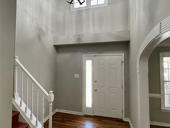 - Description: 2 story open foyer, wood floor, chandelier