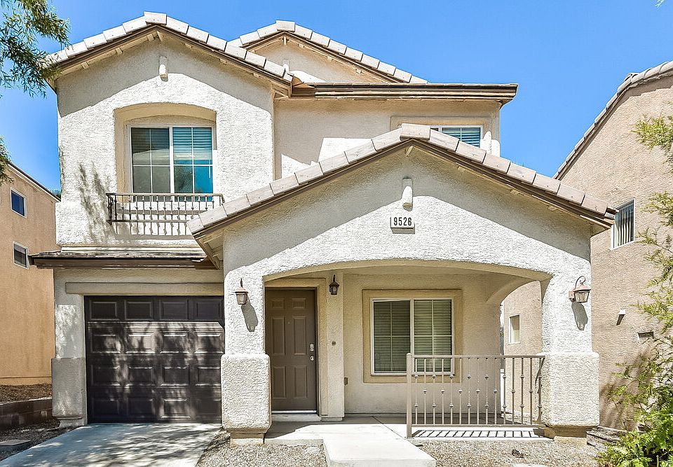 Explore this two-story Las Vegas stucco home tucked away on Grandview Spring Avenue. It comes with three bedrooms and two-and-a-half bathrooms. Recently renovated, the living room in this rental home has attractive, durable hardwood floors. This room is spacious, so bring all your furniture. The modern kitchen includes stainless appliances, granite countertops and wood cabinetry. Since this residence features wood floors throughout, the master suite looks quite elegant. The master bedroom is spacious, with an attached en suite bathroom. It features a huge walk-in closet, two sinks and a tub. The home also offers a two-car garage for your convenience. You'll also have outdoor space, which is perfect for parties.