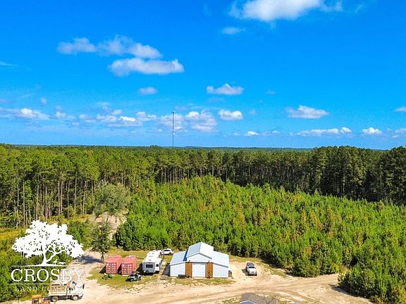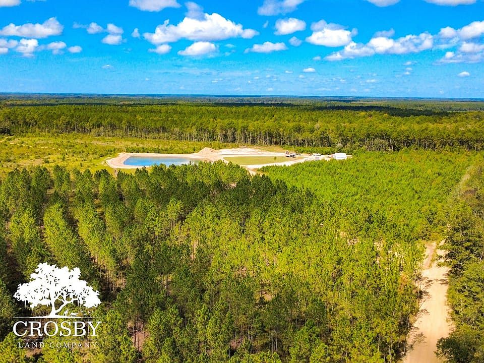A centerpiece of the land is a picturesque 2-acre pond, providing a serene setting and potential for recreational activities. The property is crisscrossed by a network of excellent internal roads, ensuring easy access to all corners of the acreage. A 30' x 40' metal barn stands ready for your vision, featuring partially finished living quarters that include a kitchen, bathroom, and bedroom. While a septic tank is needed to complete the living space, the groundwork is laid for a comfortable on-site residence or a multi-purpose workshop. Utilities are robust, with a deep well equipped with an oversized tank and underground 400-amp electric service already in place. Over 1 acre of established lawn provides a ready-made site for your dream home. Outdoor amenities further enhance the appeal, including an above-ground pool with a surrounding deck and cabana, a dedicated chicken coop, and a deer skinning rack for hunting enthusiasts. Approximately 10 acres of planted pines contribute a valuable timber component and enhance the landscape's aesthetic appeal.