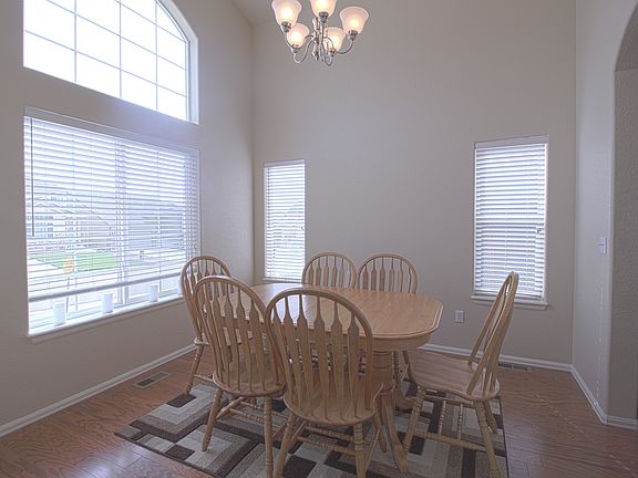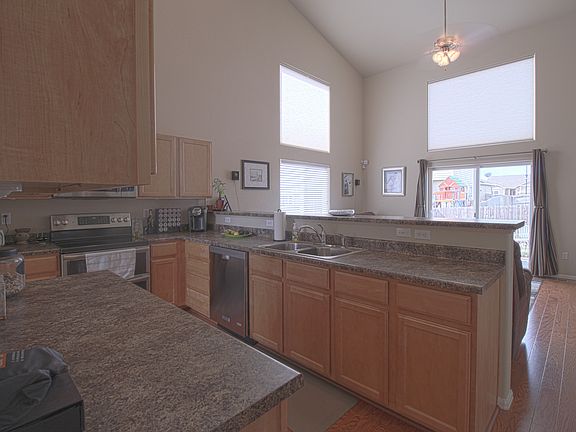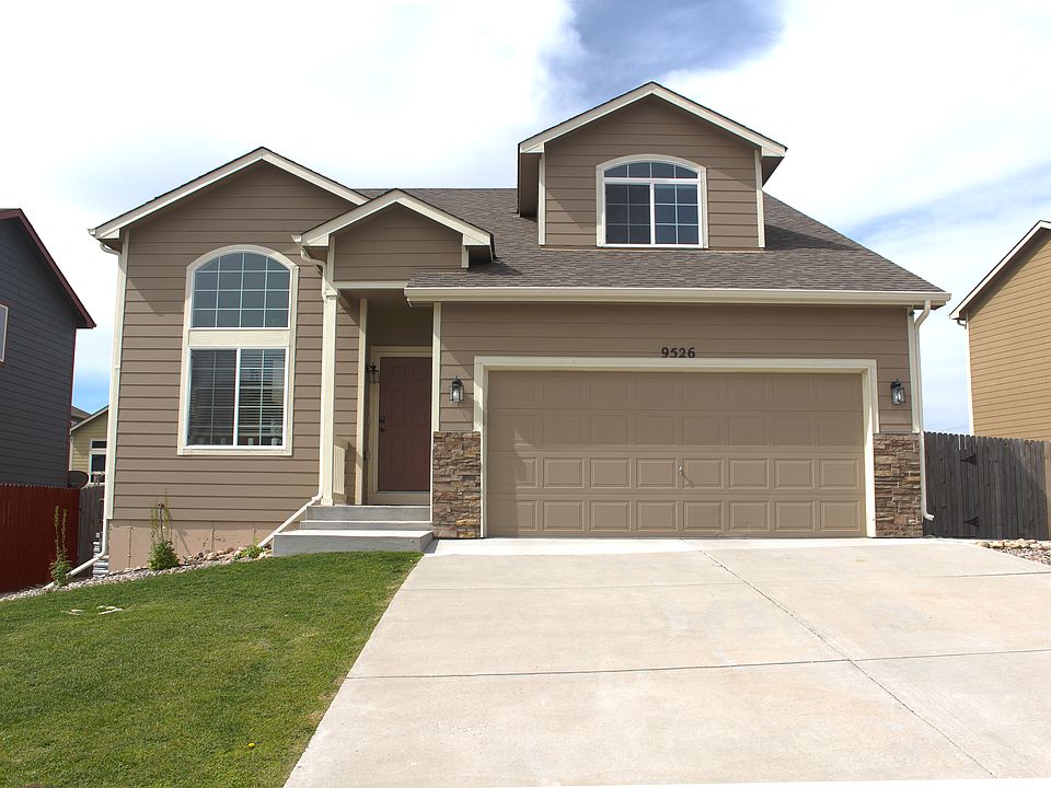 Beautiful 3 bed 3 bath home in Metropolitan Club subdivision of Woodmen Hills, featuring 2 rec rooms for indoor and outdoor pools/gym/parks/trails/playgrounds and antlers creek golf course. Home features high vaulted ceilings in dining/kitchen and living room for an open and large feel. All bedrooms have a walk in closets. Fully landscaped backyard with storage shed. laminate flooring in entry/dining/kitchen/living room as well as tile in all bathrooms.Gently lived in and in like-new condition. Full Basement with rough in plumbing for lots of room to grow and easier finishing for more space. Easy access to shopping and great D49 schools.