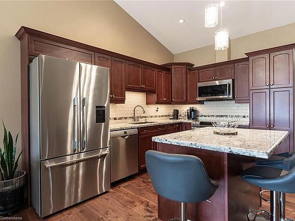 Stunning End Unit Condo Townhouse Bungalow at Willow Ridge Located in Niagara Falls Offers 2 + 1 Bedroom and 3 Bath. Open Concept. Living and Dining Combine. Hardwood, Pot Lights, California Shutters and Custom Blinds Throughout. Cathedral Ceilings. Beautiful Kitchen with Stainless Steel Appliances, Center Island, Granite Counters and High Quality Cupboards. Primary Bedroom with 3 Pc Ensuite. Other Bedrooms Cozy Size. Finished Basement with Spacious Rec Room, Additional Bedroom, Bath and Fireplace. Main Level Laundry. Inside Garage Access.Perfect Back Yard Deck with Covered Gazebo. Bright and Airy Home with Lots Of Windows That Bring In Tons Of Natural Light. Close to Schools,Parks, Golf and All Essential Needs. Minutes to QEW Hwy, Niagara Falls Famous Attractions (Clifton Hill/Hotels & Casino/Indoor Water Park) and Rainbow Bridge to America