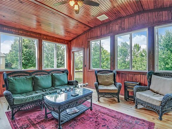 UPDATED AND MOVE IN READY! Newly refinished hardwood floors, new carpet, paint, fixtures, new sprinklers and more! Beautiful 3 season room with private view of big lot! Kitchen features backsplash, granite counters and island, pantry, built-ins, breakfast area and stainless appliances. Open floor plan has big family room with soaring vaulted ceilings, built-ins and fireplace! BIG master bedroom with 2 walk in closets and updated master bathroom. Private office with built-in bookshelves. Walk out basement has game