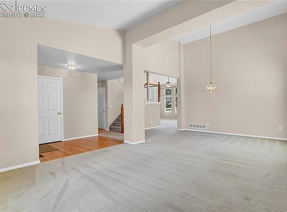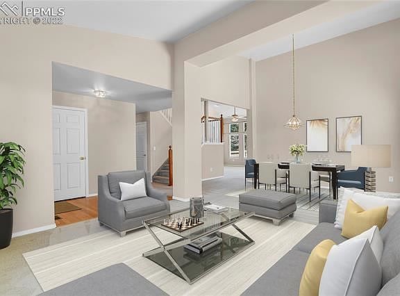 Great opportunity to own in Pine Creek! District 20! Beautiful open two-story home in Pine Creek with mountain views. Dramatic full vaulted ceiling in the front formal living and dining room. Walk into the Kitchen with lots of cabinet and counter space and a pantry. The kitchen and open living room with a cozy gas fireplace walk out to the established fully fenced landscaped back yard. the space is great to entertain. Main level also has a powder room and laundry. The upper-level loft makes for a great office. 2 spacious bedrooms share a Jack and jill bathroom. The large Master bedroom has vaulted ceiling and big 5-piece master bath. Huge open unfinished basement has a bathroom rough in and is ready for your finishing touch with crawl space for additional extra storage. Concrete patio is 12 x 12. All of this sits on a great cul-de-sac and 3 car garage with plenty of space for the vehicles and toys. John Venezia Park is across the street, where there are covered pavilions, large sports fields, top notch playground equipment and a water park for the kids in summer. This home is conveniently located near Memorial North Hospital and Childrens Hospital, YMCA, and main roads for an easy commute. The Promenade Shops at Briargate and numerous of other shops and restaurants grocery store and the movies all close by. Come get this one!