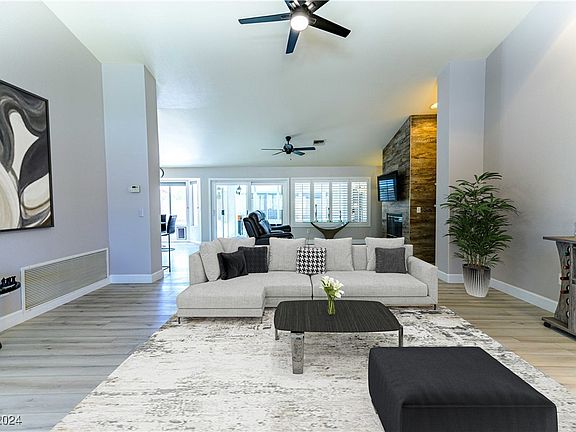 Huge open unique floor plan. Lovely and Updated Home in highly sought-after Sun City Summerlin – a premier 55+ community for active living lifestyle. This home enjoys many upgrades and amenities including luxury vinyl plank flooring throughout. A beautifully-maintained home with 2 bedrooms, 2 bathrooms, office, huge living and dining area, plus a gas fireplace for the cool winter nights. Part of the patio is enclosed for winter-time gatherings. The garage has lots of storage with clean epoxied floors. If you have pets, this is the home for you – the back yard in completely enclosed with gates. Plus, the community has too many amenities to list, and includes several pools, 3 golf courses, fitness centers, parks, tennis, pickleball, social groups plus much more. This is a remarkably lovely home and community.