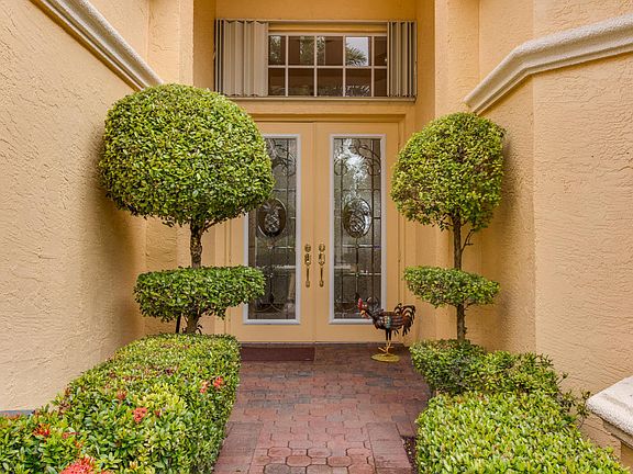 From the moment you walk up to the front door, you realize the love and care and that has gone into making this residence a home. New 2013 A/C unit, Lovely landscaping and lighting, leaded glass front doors, beautiful coffer ceiling in foyer, fully tiled 20 X 20' on the diagonal w/ double width baseboards. The renaissance style kitchen includes upgraded appliances, wood bead board moldings on island, raised double ovens,42' wood cabinets with moldings, plus glass doors, & display for plates. Granite counters, marble back splash, ladies desk and walk in pantry. Kitchen griddle, with wide and narrow burners. Tommy Bahama breakfast room table and chairs, and custom bar stools available. French doors to the patio, with transom glass for additional natural light. see more...