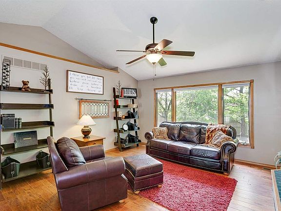 Welcome home! Beautiful inside and outside, this fabulous home features an open floor plan with spacious family living areas. The main living area, hearth dining area and kitchen include vaulted ceilings, wood floors, and a two-way fireplace. The large windows and French door to the deck add to the awesome natural light and provide gorgeous treed views throughout these main floor areas. The hearth dining area is open to the large kitchen with fantastic cabinet and counterspace, stainless steel range/oven, microwave, and dishwasher. The owner's suite features the perfect combination of a spacious bedroom with high-vaulted ceiling, décor ledge, windows overlooking the private backyard, walk-in closet, and a relaxing bathroom with dual-sink vanity, separate shower and a whirlpool tub. The two additional main floor bedrooms have great space and good closet storage, with an additional bathroom just off the hallway. All main floor bedrooms have brand new carpet and pad â just installed! The finished viewout basement features a huge family/recreation room with awesome space for media viewing, game tables, play areas â endless possibilities to make this space the extra area your family needs! The basement also includes an oversized bedroom with walk-in closet, a full bathroom with tub-shower, and an additional finished room for an office, playroom, hobby room or workout room â you choose! The exterior is so inviting â gorgeous trees, beautiful landscaping around the house, and backyard privacy with the perfect deck for grilling, entertaining, or just enjoying a quiet evening outdoors! The deck has impressive space - partial deck area has pergola, with the additional deck area uncovered. The exterior also includes a sprinkler system, irrigation well, and a playset (that can stay or be removed.) This wonderful home has outstanding indoor and outdoor living areas to enjoy with family and friends!