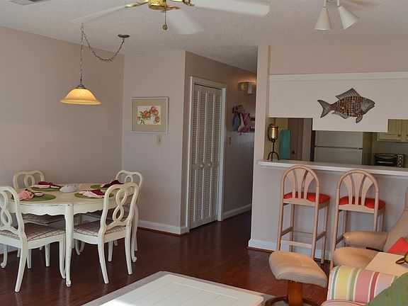 Enjoy leisurely boating, the beach and the community pool when you own this lovely waterfront town home at the desirable Queens Grant complex. This very spacious two bedroom unit has a master suite on the entire second level. Beautiful hardwood floors in the kitchen, hall and living room. Two canal front decks with water views. There is a large carport underneath with plenty of parking, a storage room and enough space for a shady spot to relax. Best of all, you can tie your boat up right outside your town home. Beach access is just across the street. Community has a boat ramp, community dock, pool and clubhouse. Furnishings are negotiable. Seller is offering a one year home warranty from 2-10 Home Warranty. Owner pets are allowed.