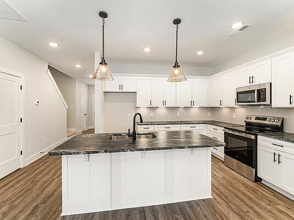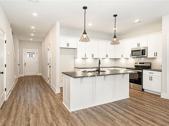 The Easton plan in Cannon Crossing: 3 bedrooms, 2.5 baths, and a 1-car garage. This open and spacious layout features a kitchen with leathered granite countertops, tile backsplash, under-cabinet lighting, pendant lighting, and stainless-steel appliances. Upstairs, the primary suite offers a private bath with double vanities, a walk-in shower with a semi-frameless shower door and a separate water closet. You'll also find 2 additional bedrooms, a hall bath with double vanities, and a convenient laundry room upstairs. Luxury vinyl plank flooring on the main level, all baths and the laundry room. This home is EcoSelect Certified.