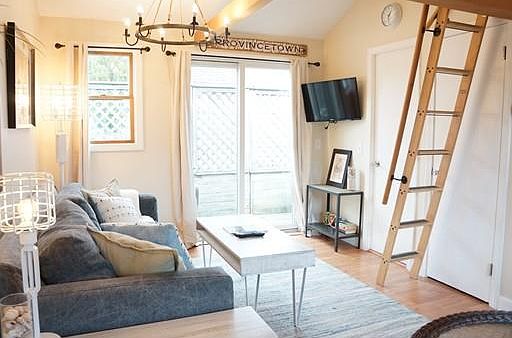 Perfectly situated on the edge of Provincetown's East End, this space has been tastefully renovated. This unit is a ''drop your bag'' and walk to the beach once you've parked your car at Holiday Shoreline. Nicely curated for you to relax and enjoy your time in Provincetown, this open floor plan unit sleep's two people; is brightly lit, with great storage and features many updates. This unit features a full kitchen and bath with a nice sized sleeping loft and comfortable pull-out couch. There is also an exclusive use deck space through the sliding glass door in the back of the unit. Cape Cod Bay, the closest beach is a very short stroll down the lane.