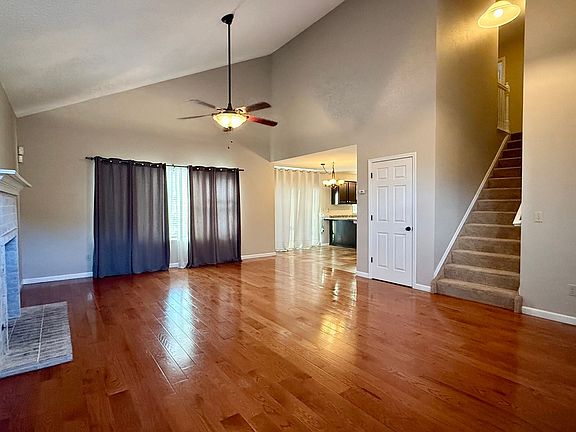 Step inside to vaulted ceilings, a bright open floor plan, and a cozy gas fireplace that anchors the main living area. Hardwood flooring flows through the main level, and the kitchen provides generous cabinet space, a walk-in pantry, and an adjacent dining area that opens to a private backyard deckideal for entertaining or unwinding with mountain views.