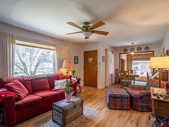 Ideally located in downtown Durango. This cute and cozy home awaits a new owner. It has been owned by the Seller for 51 years and lovingly taken cared of the entire time. The home is located on a very minimally traveled street and from the front door to the bottom of the Sky Steps (500 steps from the city to the College and city and mountain panoramic views) is only 250 feet away. In addition, you are within a short walking distance to downtown and all it has to offer, grocery stores, elementary school, and many churches. The home has three bedrooms, a combined living and dining room, and a den area. The kitchen is compact yet efficient. The living and dining area has oak hardwood floors that are in very good condition. There is a good amount of storage in the home for its size. The hot water heater and furnace were both recently replaced. The yard has an irrigation system and there is plenty of room for gardening. The garden shed provides storage for gardening equipment, bikes, and outdoor toys. The home was built in 1953 and the foundation seems to be in very good condition. There is room to add on to this home possibly to the north or west. There are some very nice NEW homes and remodeled homes on the same street that are well taken care of adding to the appeal of this property.