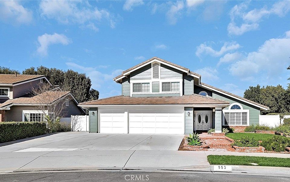 Welcome to 953 Finnell Way, Placentia, CA 92870, a captivating two-story turnkey home in The Fairways at Alta Vista. This 3-bedroom, 2.5-bath property has undergone stunning renovations in recent years, offering an exquisite blend of contemporary elegance and cozy comfort. Nestled on a generous 8,000 sqft lot, this sought-after location near the Alta Vista Country Club exudes a quiet community atmosphere. Move inside to explore high vaulted ceilings, flooded with natural light, complemented by white oak laminate floors, custom baseboards, and door moldings. LED recessed lights illuminate the space, while an elegant double-door front entryway sets the tone for the home's refined ambiance.