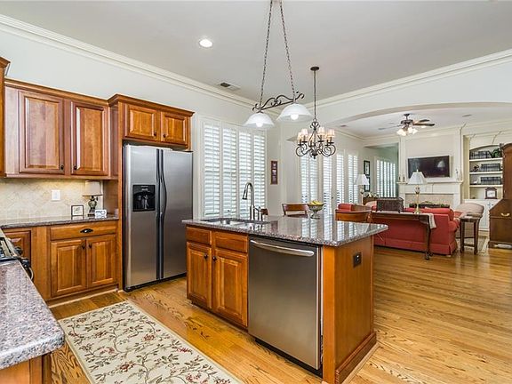 - Kitchen Features: Cabinets Stain, Eat-in Kitchen, Pantry, View to Family Room, Kitchen Island, Breakfast Room, Solid Surface Counters