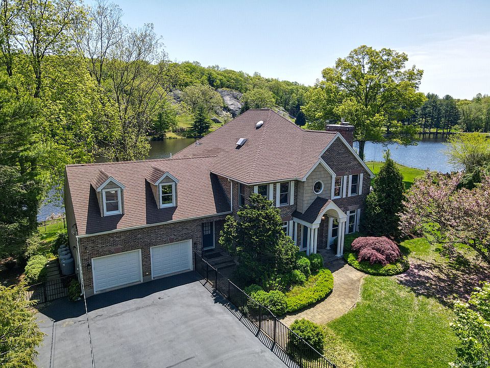 An enchanting direct waterfront retreat awaits, offering a casual open floor plan complemented by, hardwood floors, high ceilings and an inviting neutral palette. A magnificent wall of glass bathes the expansive kitchen and family room in natural light, providing panoramic 180-degree view lake views, from most rooms, and the secluded paradise beyond. A light-filled Chef's kitchen features a center island with a double sink, Carrera marble tops, custom built-in cabinetry with convenient pullout drawers and higher end appliances, including a Miele 6-burner gas cook-top. Both the dining and living rooms offer crown molding and transom windows, while the living room provides a cozy gas fireplace for those colder winter months. Step from the kitchen and family room through sliding glass doors onto the screened-in porch, which offers teak flooring, high ceilings with skylights and a ceiling fan. Built-in infrared heaters help you stay cozy during autumn evenings. Multiple sliders provide access to the expansive deck overlooking the lake, enhancing the allure of indoor-outdoor living. Four bedrooms are found on the second level, including the spacious master with fabulous lake views. The upper level offers an additional 425 SF of finished space, with high ceilings & skylights, and a large cedar closet, while the lower level walk-out offers 845 SF of flex space, plus a relaxing sauna and a full bath with a huge walk-in shower; ideal for a recreation room, gym, art or yoga studio. Sweeping verandas, patios, and decking seamlessly blend with professionally landscaped grounds with extensive night lighting, creating a serene oasis ideal for al fresco dining and outdoor gatherings. The heated, salt water, in-ground Pebble Tec pool with spa and waterfall feature, framed by stone accents and lush lawns, harmonizes with the picturesque surroundings, inviting you to revel in nature's splendor. Nestled on 387' direct water-front between Boston and New York, this bucolic haven offers expansive water views and a serene ambiance, perfect for indulging in relaxation and outdoor pursuits. Enjoy fishing, kayaking and paddle board from the floating dock, and a winter hot tub for snowy evenings. Escape to this secluded entertainer's paradise and immerse yourself in a spectrum of intimate experiences amidst nature's embrace. Low annual HOA of $450. Simply amazing!
