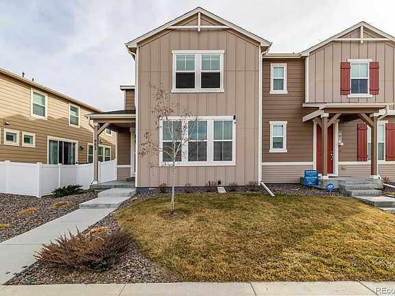 Welcome to The Village at Southgate, your dream home destination! Located just minutes from Hwy 85, and with quick access to DIA, this beautiful residence is conveniently situated across from Prairie View High School. The exterior boasts a grassy front yard, a rear 2-car garage, and a cozy side patio, perfect for enjoying your morning coffee. The immaculately designed interior highlights a generous open floor plan enhanced with a trending palette, recessed lighting t/out, sleek wood-style vinyl flooring, and sliding glass doors that merge indoor and outdoor living. The heart of the home is the spotless inviting kitchen, outfitted with gray stainless steel appliances, quartz counters, a beautiful subway tile backsplash, modern light gray cabinets, a convenient pantry, and an island with a breakfast bar. The loft area offers versatility, perfect for use as a home office, entertainment space, or children's play area. Let your imagination run wild with the endless possibilities this bonus space presents. The main bedroom is spacious and inviting, with a sitting area, a chic ensuite with dual sinks, and a spacious walk-in closet. The charming patio promises a tranquil spot for afternoon relaxation! As an added benefit, our homes are designed with energy-efficient features that help you live a healthier and quieter lifestyle while saving thousands of dollars on utility bills. Take advantage of this gem- it's the one you've been waiting for!