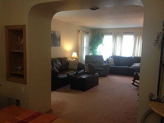 Enter through an enclosed front porch into a great 2 bedroom ranch w/3rd bedroom or den added to the back of home. Kitchen is a nice size with some updates. Basement rec room is ideal as a theater room. Hardwood floors in both bedrooms and under carpet in dining & living room (no knowledge of condition). You will love the fenced backyard with a 20x12 covered deck, mature trees and a park next to the home. Love the golf course this home sits at the edge of one. This home is move in ready and priced to sell.
