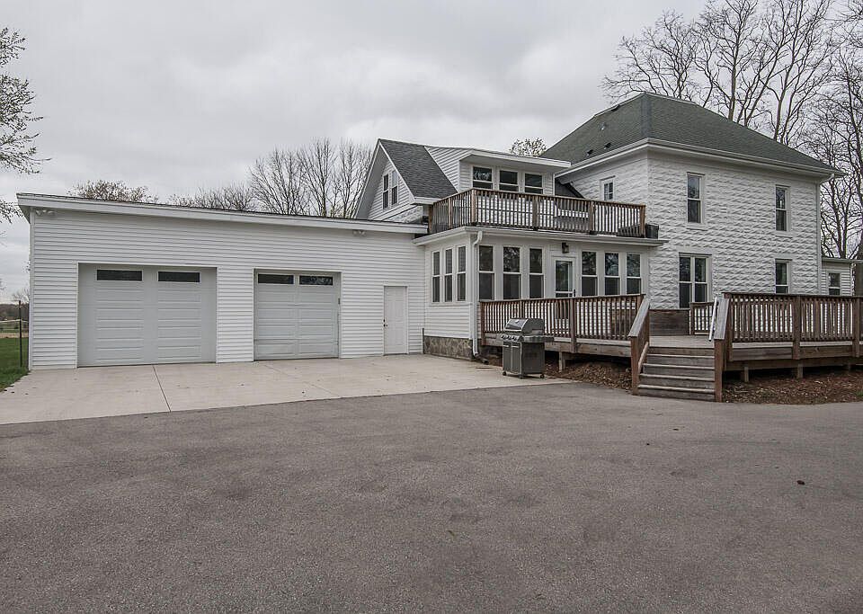 Rustic 1909 Farmhouse surrounded by 3 acres centered in a 30 acre parcel of farm field this house has been recently updated to modern contemporary standards throughout . Every room has been refined and made current . 4 bedrooms, 3 bathrooms, a large deck, 2 enclosed porches , and upper level deck make this an ideal place to watch the sun rise or set while enjoying relative exclusion all within minutes of the interstate system. Old barn buildings spot the landscape and the property has recently been the home to horses, chickens and ducks - .