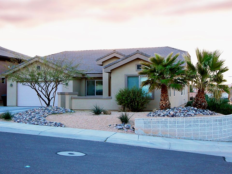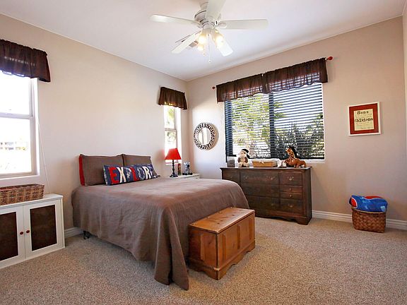 This home features 2,055 SF, 3 Bedrooms, a den and 2 Full Baths, on a cul-de-sac adjacent to the Canyons Golf Course. Custom built in 2006, this home offers a spacious open kitchen with granite counter tops and furniture grade cabinetry, an open eating area, a breakfast bar and black appliances. This home features a large and open living room with raised ceilings and a ceiling fan. A large master suite with ensuite bath, a double sink vanity. and spa tub, and glass block accent windows . French doors open to the den, which is light, bright and airy. A fully landscaped yard with a grassy area, a large covered patio. A double car garage and courtyard entry.