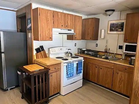 Located on second floor of triplex in the village of Westfield, VT within walking distance to general store and other town amenities. Apartment once two bedroom changed to one bedroom with oversized living room. Originally set up for short term/vacation stays converting to long term leasing. Fully furnished (as shown in pictures) and contains all basic household amenities including but not limited to cookware, dishes, linens, and bathroom essentials. New bathroom appliances installed and freshly painted throughout unit. Comes with washer and dryer in unit and access to high speed, wireless internet along with access to a multitude of streaming services. Large balcony with porch swing and large driveway access with private single car garages available. About 10 minutes to Jay Peak and 20 minutes to hospital. First, last, and deposit required to move in. Tenant pays electric but everything else included in rent (including wifi, streaming services, and furnishings)