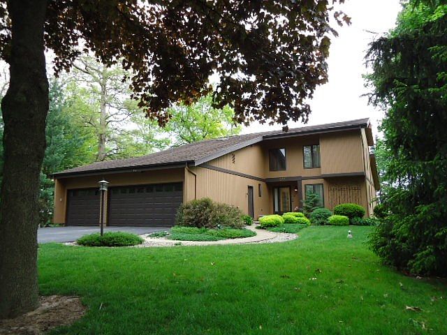 Spectacular and contemporary 2 story home in Zeller's Woods! Quality craftsmanship shines throughout the home and grounds (1.16 acres) and provides all the amenities you are looking for in a large home (4 BR 3.5 BA's = approx. 2860 above grade finished sq ft). Main floor bedroom and laundry, vaulted LR and DR. Sun room w/sky lights is open to the family room w/fireplace and custom built-in bookshelves. Large kitchen has been updated w/new appliances, Jenn-Air double ovens w/convection, new countertops/sinks/faucets, island and HD laminate counter tops. Easy to clean wood and bamboo floors, and carpet in BR's. Master BR suite w/vaulted ceilings, WIC, double sinks and tiled shower w/glass doors. Full unfinished basement, 3 car att. garage, new decks, water heater, and 4 ton a/c unit. Price Reduced!