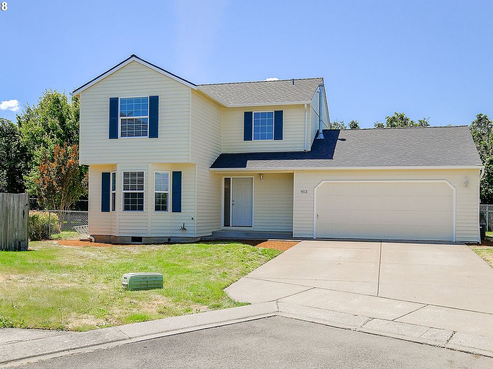 "Best Location in Neighborhood" Very Attractive 2-story, 3-Bedroom & 2.5-Bathroom Remodeled Home! Large Fenced Backyard that backs up to hazelnut orchard. New 65" mounted LG TV. Many Newer updates, Roof, Carpets, Vinyl Floors, Kitchen Counters, Blinds, Bath-Sinks, mostly all Interior/Exterior Paint, etc. Kitchen with Pantry, Breakfast Bar & View from Sink. Living/Dining Great Room with Gas Fireplace & Newer Slider. Close to everything!