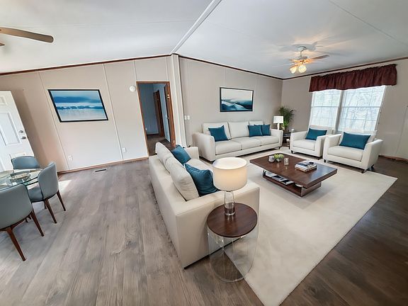 3.75 acres with Bull Creek frontage! Updated 3 bedroom, 2 bathroom manufactured home on a permanent foundation that has been affixed to the land by Taney County. Large SHOP building with electric, water, HVAC window unit, insulation, concrete floors, overhead garage door and tons of storage. Paved road that is publicly maintained.The move-in ready home has an open floor plan between the living room and kitchen and a split bedroom floor plan with the primary suite on one side and the other 2 bedrooms and a full bathroom on the other side. There is also a large bonus room that adds 303 finished square feet of living space and is perfect for a 2nd family area, home office, man cave, kids play room, hobby room, etc. The home has been maintained very well and has recently been updated on the inside. Other features to note are the wood burning fireplace, spacious primary suite closet,. walk-in kitchen pantry and attached carport with storage.This property offers excellent privacy with mature trees in a quiet, serine setting. No HOA. Excellent lot for gardening and landscaping. Peaceful country homestead only 10 miles from Branson and 32 miles from Springfield.Some listing photos contain images that utilize virtual staging.