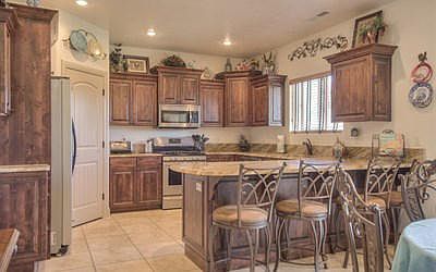 Well maintained home situated on .47 acres. Functional floor plan with private master suite, bonus area upstairs, open family room/kitchen plus formal living room. Nicely upgraded with travertine tile, granite, rod iron, tankless water heater, beautiful rock fireplace and much more. Full block wall with mature landscaping, plus room for RV Parking. Must see!! Brokered And Advertised By: PRADO & KRAMER REAL ESTATE Listing Agent: RYAN KRAMER