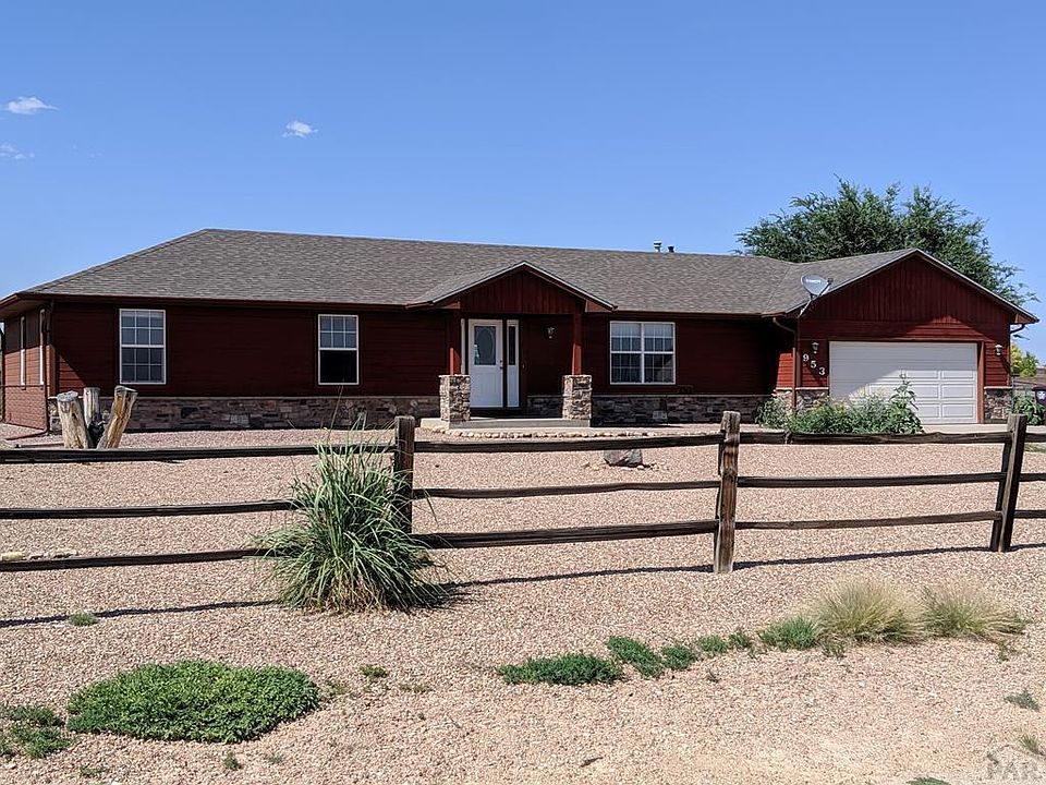 Mechanic's dream, Workshop paradise. 4 bed 3 bath 2 Car attached and a 30' x 50' metal building. Everything is on one-level including a separate guest wing. The main area welcomes you with an open concept that includes easy to maintain laminate wood-look floors, a large kitchen with new stainless steel appliances, an island and a large dining area which could be a formal or casual. There's also a built-in desk, a large laundry room and a large walk-in pantry. The master bedroom features a walk-in closet, a 5-piece bath, with his and her vanities, a jetted tub, and a walk-in shower. Walk through a set of French doors to the guest wing featuring a 2nd living area, 2 bedrooms and a full bathroom. Fenced back yard includes 4 raised organic garden beds, apple trees, pine trees, a retractable clothes line and a huge 2nd garage/workshop/studio/barn with concrete floors and electrical including LED lighting, and separate plugs--a 220v, a 110v and a welding plug. Mountain views front and back. Come visit your new home.