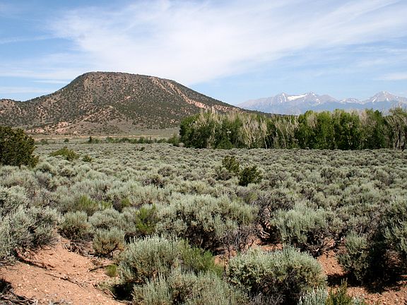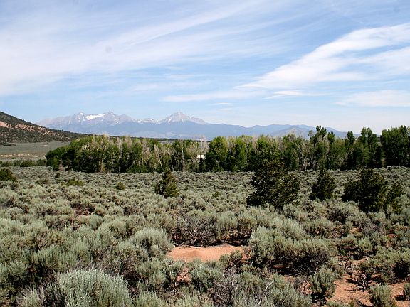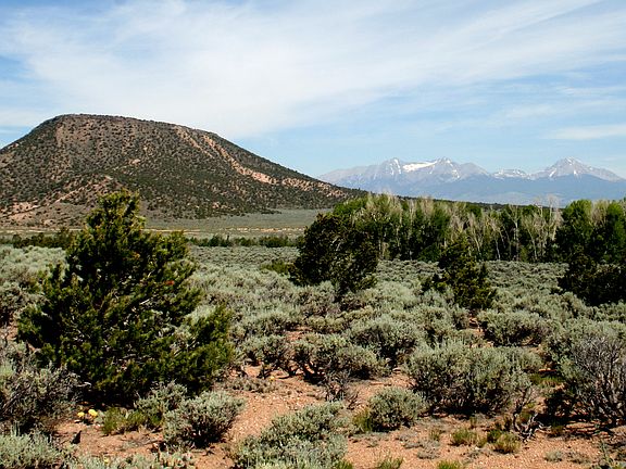 Slightly sloping lot with a seasonal creek (Ojito Creek) at back of property. Lots of cottonweed trees. Views of Chate Mesa and Blanca Massif. Year-round access. Owner financing! Close to Mt. Home Lake.