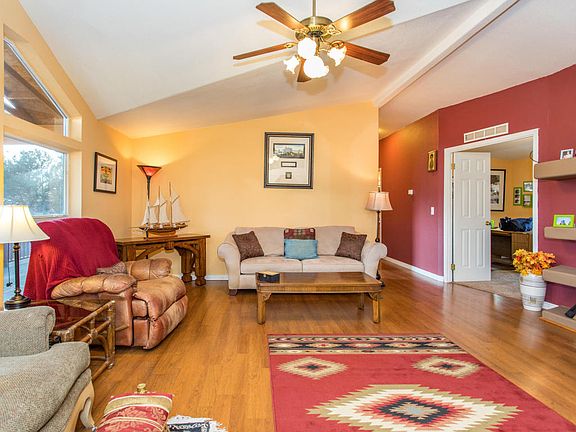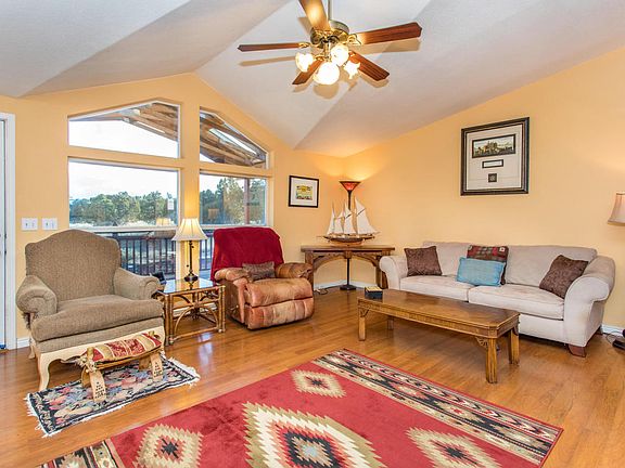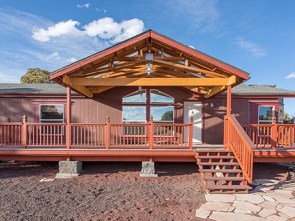 Here it is! An affordable home, on a quiet street...that backs National Forest! This 3 bedroom, 2 bathroom manufactured home has a great floor plan, an attached 3 car garage, and miles of forest right out front. A huge front deck looks at nothing but tall juniper and pinon trees. Step into a large living room with vaulted ceiling and a pellet burning stove to keep things warm. Just around the corner is a big kitchen with an island and a walk-in pantry. The master bedroom has an en-suite bath and a walk-in closet. 2 big guest rooms and a bath are just down the hall. There is plenty of room for toys as well, with a 3 car garage, plenty of RV and trailer parking and even an RV dump into the septic system. If you want a great home, with the forest as your front yard...here it is!