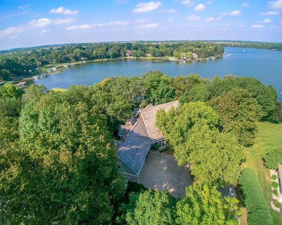Private wooded lot with 161 feet of hard sand beach away from major lake boat traffic. Feels like your own private park. Custom designed with soaring vaults and coffered living spaces. Elevator reaches all 4 stories, and second kitchen in walk out level makes home great for multi-generational living. Hand picked granite, clear cut natural cabinets, hickory stained wood floors, curved over sized rooms and double person office makes this home sing. 2017 upgrades include new roof and skylights.