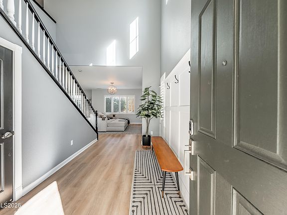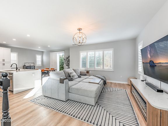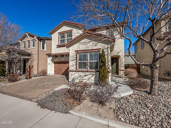 Welcome home to 9530 Vikingholm Road! This two-story property has been beautifully updated and offers the space every new homeowner desires. You'll find freshly updated exterior and interior paint, new LVP floors, lush carpet, a spacious open floor-plan and dreamy kitchen. Once inside, you have a soaring entry with 20+ foot ceilings and windows that flood the space with Northern Nevada's 300+ days of sunshine. Hang your day on your custom board and batten wall or step into your guest room for a light post-work breather. The open floor plan is wonderfully presented here with an oversized living space, a great dining area and a gorgeous kitchen island, complete with a waterfall edge. Every detail in the kitchen was thoughtfully planned including the soft close cabinetry, pull out shelving, natural stone countertops and full backsplash. The stainless appliances are all new and the waterfall island completes the kitchen of your dreams. With a plethora of natural light throughout, you'll love the plantation shutters installed for the days you desire a little less light or head out into your rear paver patio and bring your dinners outside in the elements. Offering one full bedroom and bathroom downstairs, the lower level is great for multi-generational living! Upstairs you'll find the additional 2 guest bedrooms, a well-preserved guest bathroom, a cozy laundry room and the primary with ensuite. The primary is oversized and provides a great walk-in closet, garden tub, walk-in shower and dual vanities. The carpet on the second story is soft and Lifeproof, giving you years of life with luscious flooring. Offering Mount Rose in the distance (be sure to check out the views), great proximity to schools and Cyan Park, walking trails all around you and an affordable HOA, this home meets all your needs with updates, upkeep, cost and location. Be sure to check out our update list in the documents tab and book your showing today! Four bedrooms, three full bathrooms and a two-car garage in one of Reno's most desirable locations; completely turn-key and ready for new ownership.