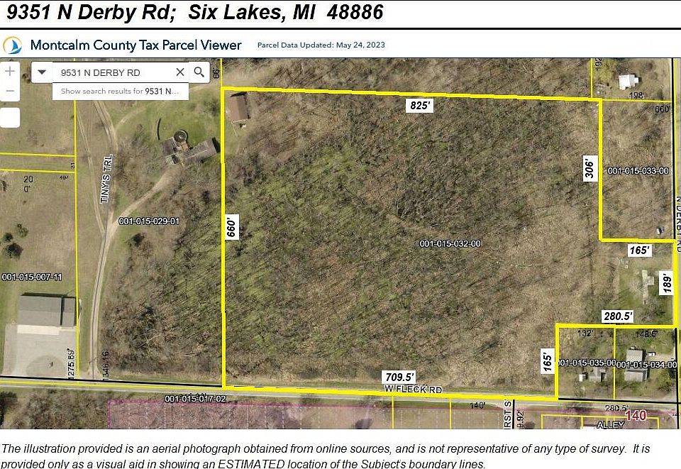 Almost 13 acres of prime recreational land in the heart of the Six Lakes area (just south of 2nd Lake) with paved road frontage on Derby Rd and also Fleck Rd. Prior singlewide on Derby Rd was removed, leaving vacant concrete slab foundation with operational well, septic system, electric service and natural gas hookup. Site is currently rented to a family until end of August (camper and personal property are NOT included in sale of real estate). Acreage is mainly recreational and as photos show, is filled with wildlife. If touring property, please be respectful of tenant's rights, and to not overly disturb the families of deer and wildlife that call this land home. (NOTE: westerly boundary on GIS aerial may be incorrect; Pole barn in NW corner does NOT go with this property)